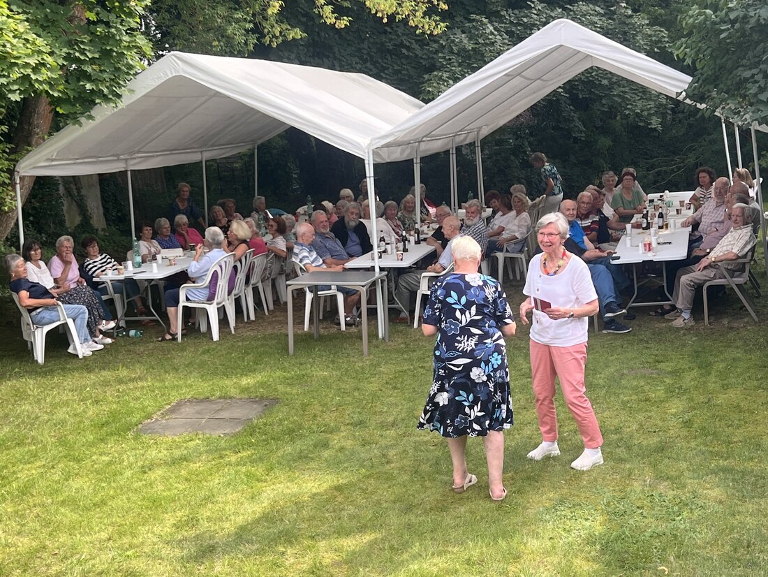 2 Seniorinnen und Senioren beim Sommerfest des Vereins Treffpunkt Birkenwerder e.V. – ein gelungenes Beisammensein in Gemeinschaft.