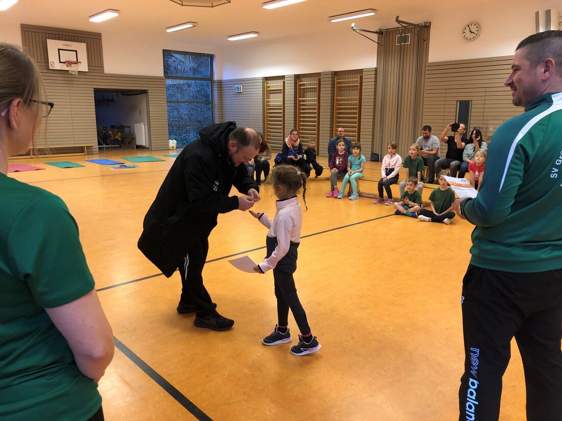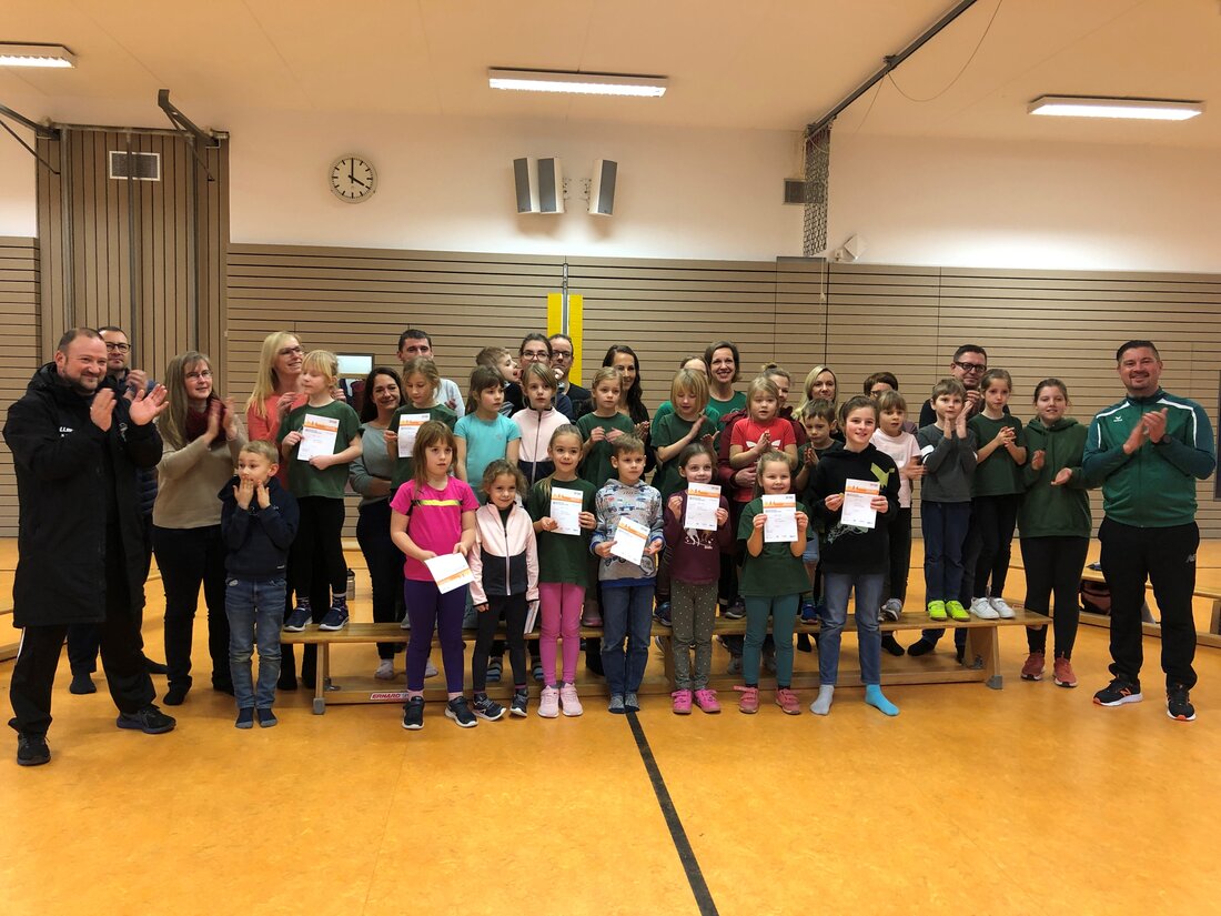 Neun der erzielten Sportabzeichen wurden am 16. Januar im Training der 1. und 2. Klassen überreicht. Um einen feierlichen Rahmen zu schaffen, waren auch die Eltern und Bürgermeister Stephan Zimniok anwesend. „Der kleinste Orden in Deutschland ist das Deutsche Sportabzeichen und das gibt es auch schon für Kinder“, erklärte Trainer Michael Zahn. Die jungen Sportlerinnen und Sportler freuten sich über einmal Bronze, siebenmal Silber und einmal Gold. Gemeinsam mit den Trainerinnen Saskia, Katrin, Leni-Sue und Trainer Michael überreichte Birkenwerders Bürgermeister den Leichtathletinnen und Leichtathleten Urkunden und Abzeichen. Es habe Spaß gemacht, das Sportabzeichen zu machen, erklärte die siebenjährige Tabea, die mit Silber ausgezeichnet wurde. „Es war gar nicht so schwer.“ Leichte Enttäuschung zeigte sich bei den Kindern, die das DSA 2022 nicht geschafft hatten. Doch die Trainerinnen und Trainer trösteten direkt: „In diesem Jahr trainieren wir weiter und nehmen auch das DSA wieder ab. Wir schaffen das!“