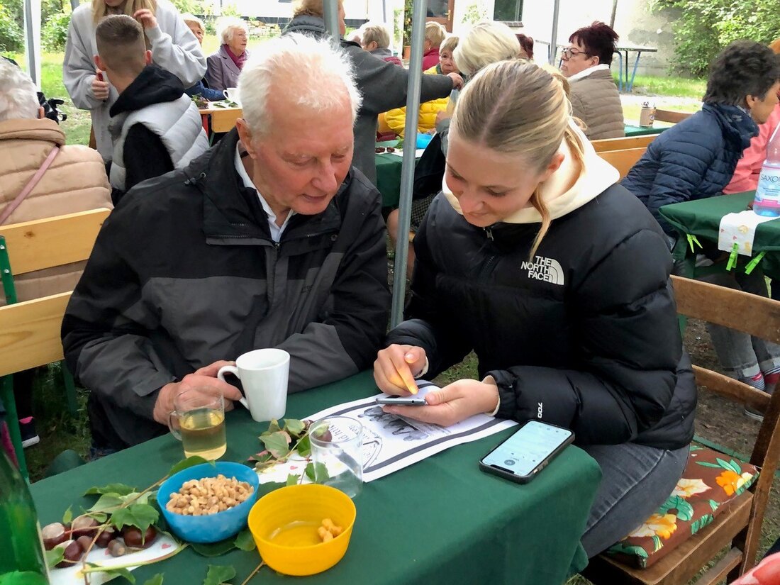 Beim Seniorenkaffee am 26. September 2022 stellten die Abiturientinnen und Abiturienten das Projekt der Zielgruppe vor und boten direkt erste Beratungen an. Diese wurden begeistert angenommen, so beispielsweise von Irmgard Elschenbroich aus dem Seniorenwohnheim Borgsdorf. Zwei Fragen zur Bedienung ihres Handys konnte Felix direkt beantworten. „So toll!“, resümierte sie. Die direkte Beratung nütze ihr viel mehr als ein zweitägiges Seminar zur Mediennutzung für Anfänger, das sie bereits besucht hatte und aus dem sie leider wenig Lerneffekt mitnehmen konnte.