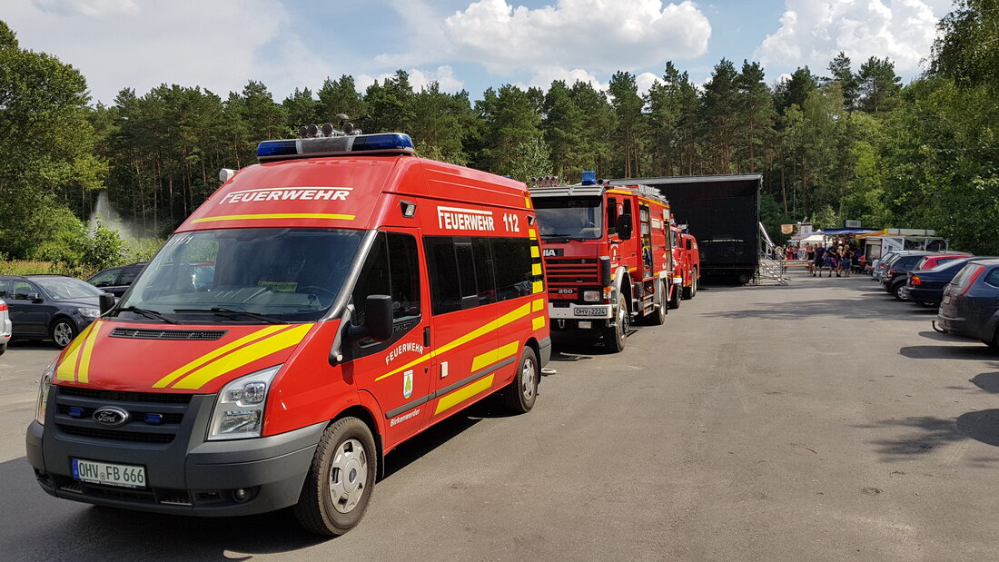 Bildunterschrift: Großes Aufgebot: Wegen der ausgerufenen Waldbrandstufe 5, waren die Kameraden der Freiwillgen Feuerwehr Birkenwerder zahlreich vor Ort.