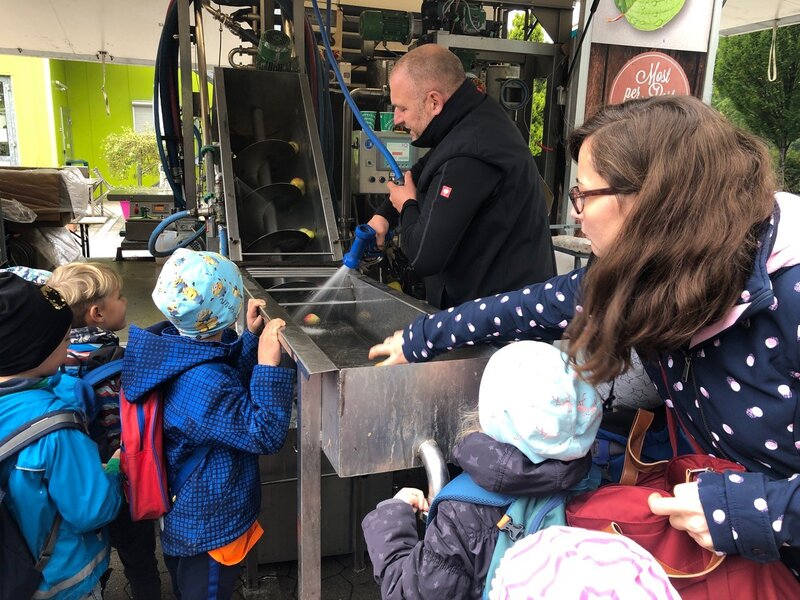 Bild 2: Die Kinder der Kita Festung Krümelstein ließen ihre Äpfel im Rahmen der Apfelwoche zu Saft pressen.