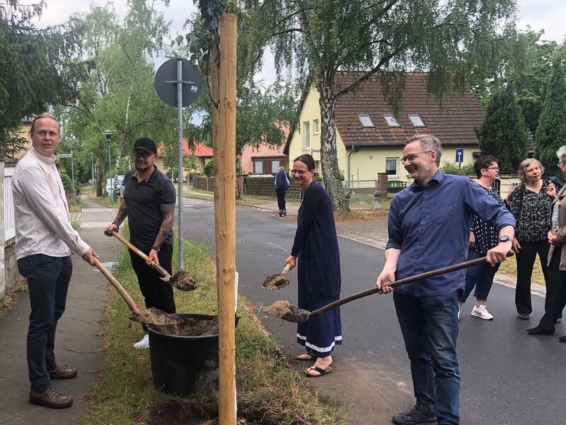 Bild 2: Die Nominierten für den Birkenpreis 2022 pflanzten in der Theodor-Storm-Straße eine Birke.