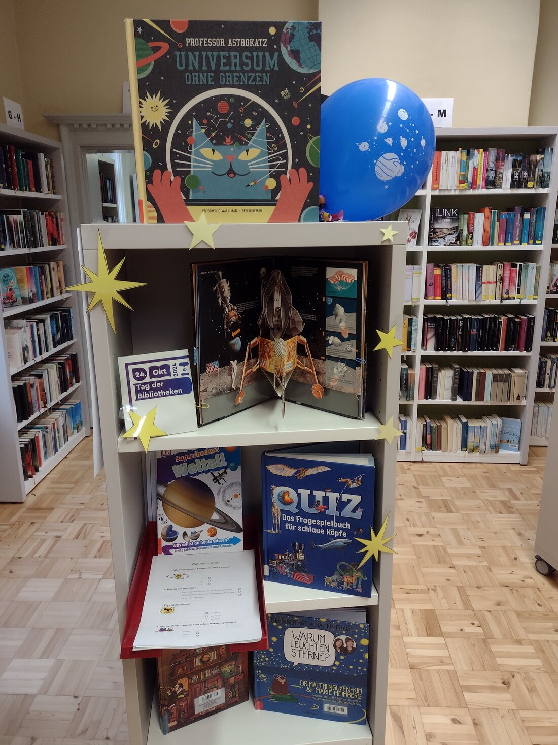 Bild 1: Mitmachaktionen zum Thema Sternenhimmel in der Gemeindebibliothek