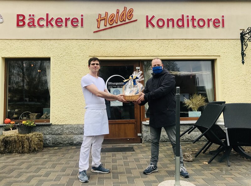 Vertretend für alle Kinder unserer Gemeinde bedankt sich Stephan Zimniok beim Team der Heide Bäckerei für das tolle Engagement und die jahrelange Unterstützung.