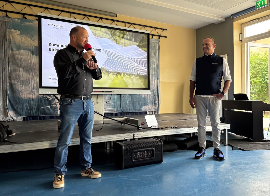 In Birkenwerder ging es bei der Bürgerversammlung am 10. Juli 2025 um ein zukunftsweisendes Thema: die Kommunale Wärmeplanung. Auf Einladung der Gemeinde wurden die Bürgerinnen und Bürger über das Zielszenario und die geplanten Maßnahmen zur klimafreundlichen und effizienten Wärmeversorgung der Zukunft informiert. „Die Bürgerbeteiligung ist uns sehr wichtig. Wir möchten, dass alle in Birkenwerder die Möglichkeit haben, sich aktiv in die Planung einzubringen. Deshalb haben wir in der Veranstaltung nicht nur das Zielszenario und Maßnahmen präsentiert, sondern auch Raum für offene Diskussionen und Anregungen geschaffen“, sagte Bürgermeister Stephan Zimniok. Alexander Steber, Projektleiter der MaxSolar GmbH, stellte dabei konkrete Maßnahmen vor, die auf den Einsatz erneuerbarer Energien setzen und innovative Technologien nutzen, um die Energieeffizienz in der Gemeinde weiter zu steigern. „Nur mit einer engen Zusammenarbeit zwischen der Gemeinde und den Bürgern können wir eine nachhaltige und zukunftsfähige Lösung für die Wärmeversorgung entwickeln“, betonte Alexander Steber. Die Teilnehmenden waren sehr interessiert und hofften teilweise zu erfahren, wie man direkt loslegen könnte mit einem kleinen Wärmenetz. Alexander Steber musste hier ein klein wenig bremsen: „Die Kommunale Wärmeplanung ist der allererste Schritt auf dem Weg dorthin und zeigt übersichtlich alle Orte in der Gemeinde auf, an denen sich ein Wärmenetz lohnen könnte. In einer Machbarkeitsstudie, die erst nach Aufstellung des Kommunalen Wärmeplans folgen kann, würden dann alle Möglichkeiten, die man in einem zuvor ausgesuchten Quartier hat, im Detail beleuchtet und deren Wirtschaftlichkeit bankentauglich errechnet.“