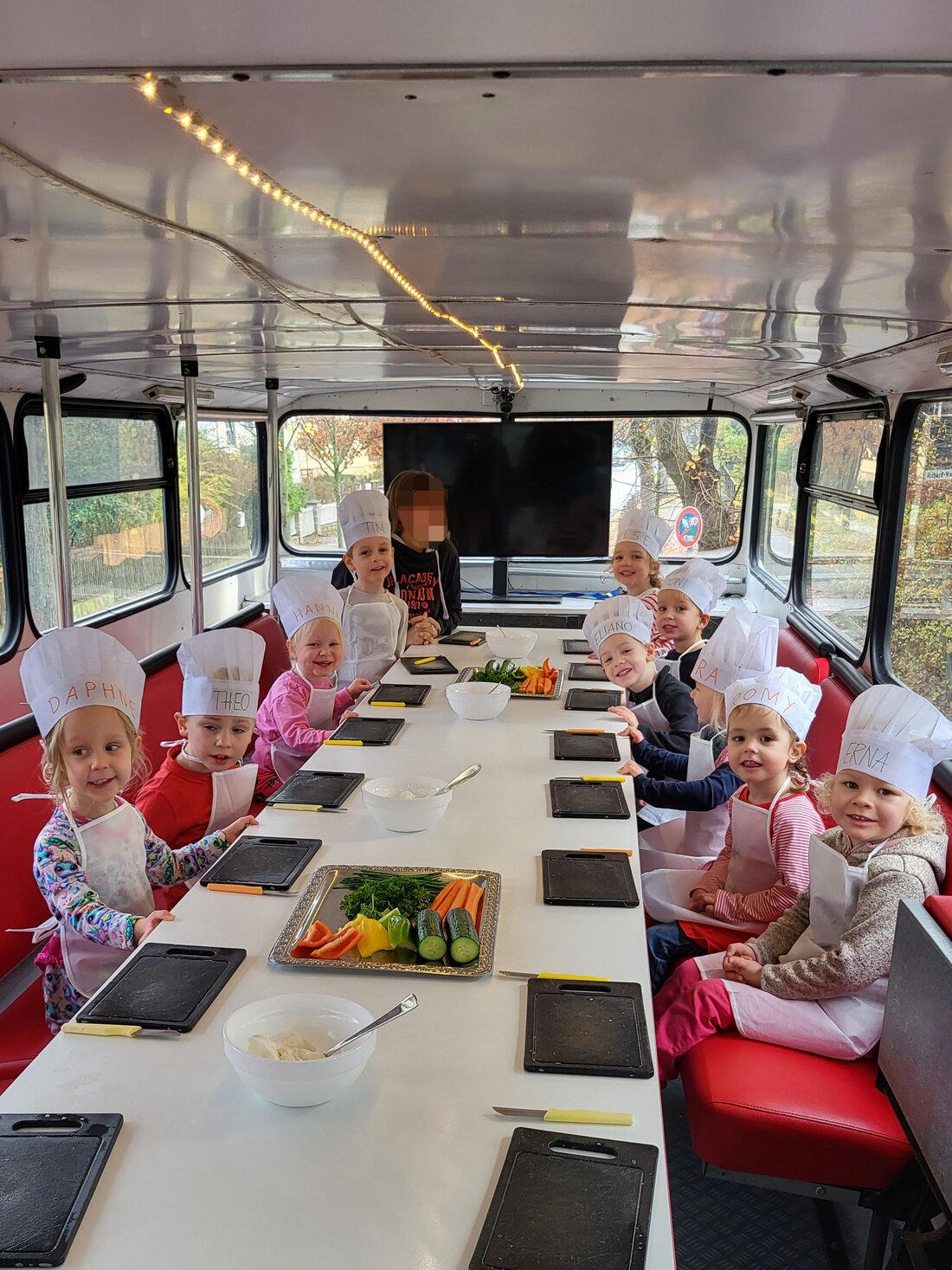 Bild 1: Die Kinder der Kita Festung Krümelstein starten motiviert in den Tag – bereit für spannende Kochabenteuer im Kochbus.