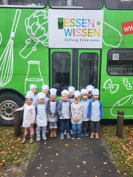 Passend zum Monatsthema Kochen und Backen hatte die Kita Festung Krümelstein am 12. November die Gelegenheit, den Kochbus der ESSEN WISSEN Stiftung Eildermann bei sich willkommen zu heißen. Die Veranstaltung bot den Kindern einen praxisnahen Einblick in gesunde Ernährung und das gemeinsame Zubereiten von Speisen.