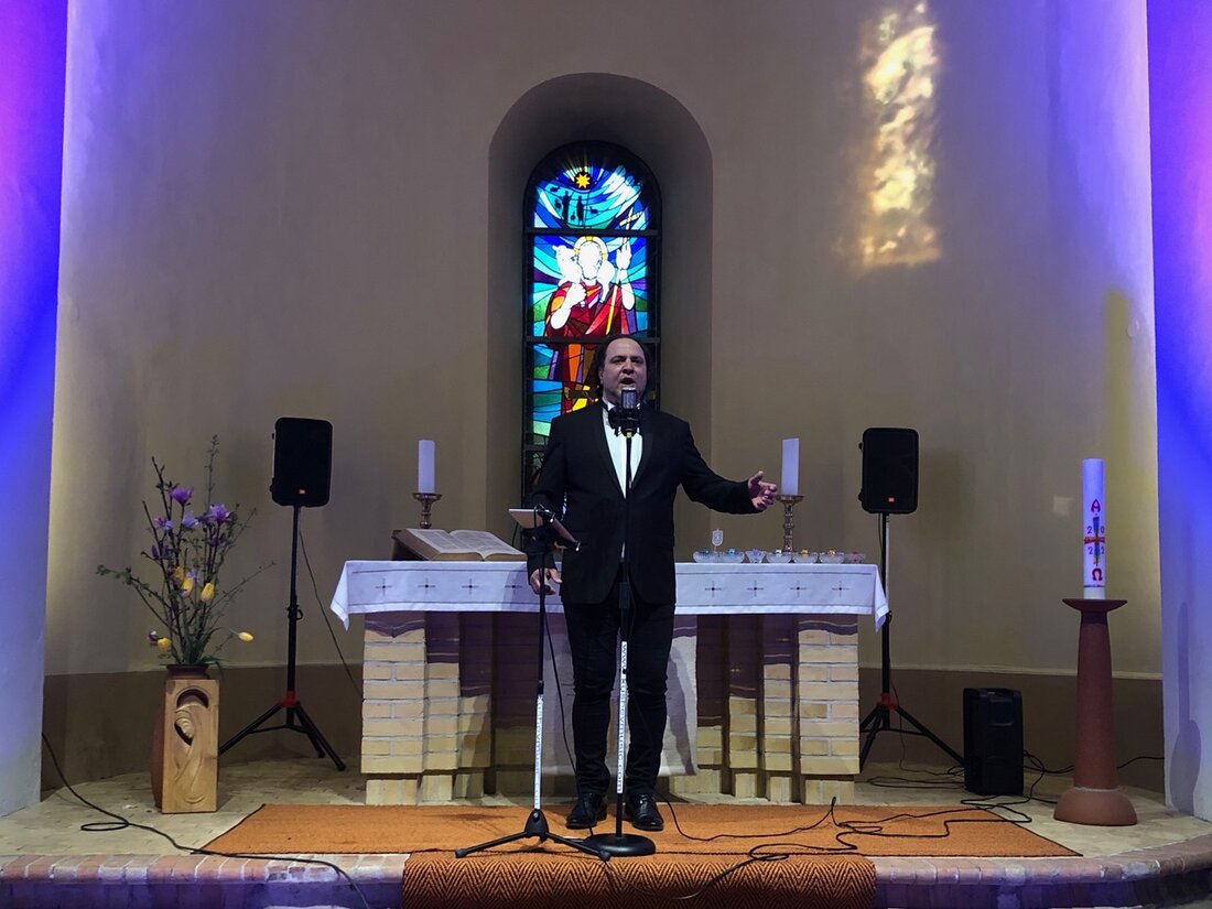 Bariton Dilian Kushev sang am 25. April 2022 mit seiner „goldenen Stimme“ in der evangelischen Kirche Birkenwerder.