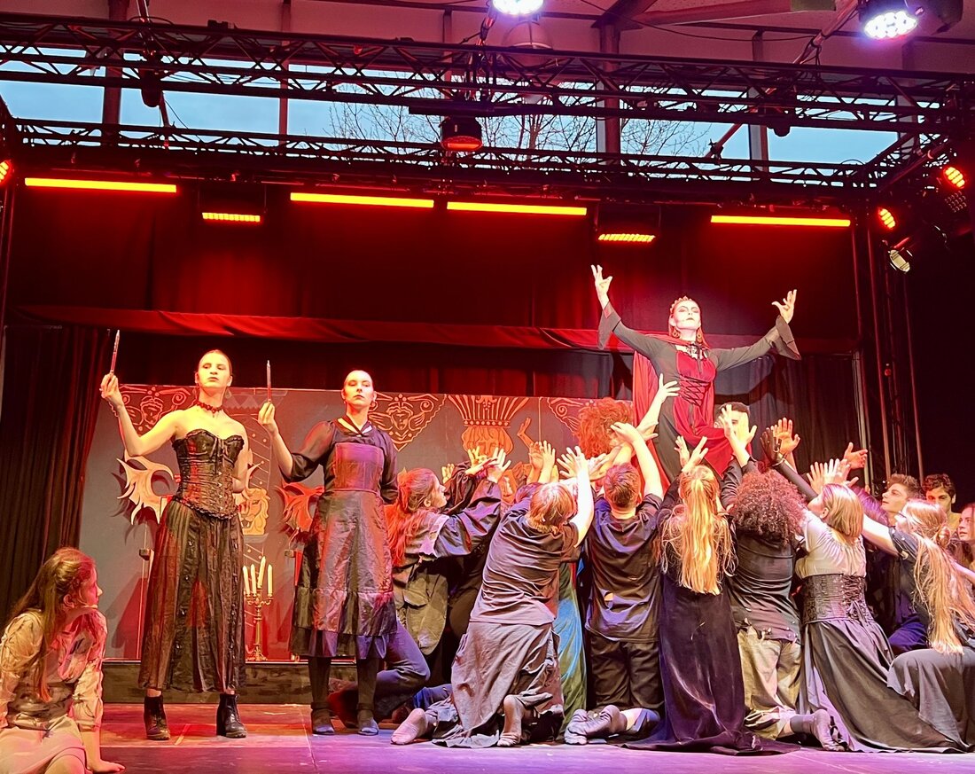 Seit 2022 haben etwa 70 Jugendliche des Spiel-Ensembles mit beeindruckenden Gesangsauftritten, des Chores, des Orchesters, der Band, der Licht- und Tontechnik sowie der Backstage-Abteilung wöchentlich für das Stück geprobt. Bewundernswert sind ebenfalls Kostüme und Maske. Für das leibliche Wohl sorgt die Schülerfirma RHG vor Veranstaltungsbeginn.