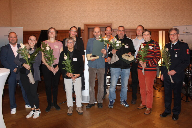 Ein besonderer Ehrenamtsempfang wurde am 6. November 2025 im Rathaus gefeiert – denn auch der Birkenpreis wurde vergeben. Ehrenamtliche aus unterschiedlichen Bereichen waren eingeladen, um einen Abend voller Wertschätzung und Dankbarkeit zu erleben. Sie engagieren sich unter anderem in Vereinen, in der Gemeindepolitik, bei der Feuerwehr oder auch als Einzelkämpfer für eine gute Sache. Ihnen allen dankte die Gemeinde Birkenwerder am Donnerstag im festlichen Rahmen. Zunächst standen die Nominierten des Birkenpreises im Mittelpunkt. Gemeinsam hatten sie bereits im Vorfeld eine Birke in der Bergallee gepflanzt – eine beliebte Tradition für die Birkenpreisnominierten. Nach einem Sektempfang im Rathaus begrüßte Bürgermeister Stephan Zimniok die zahlreichen Gäste im Ratssaal. Die neue Vorsitzende der Birkenpreisjury, Christine Trost, erinnerte in ihrer Rede an Mutter Teresa, die andere dazu ermutigte, Gutes zu tun, auch wenn es nicht gesehen wird. Der Ehrenamtsempfang sei eine gute Gelegenheit, genau dieses Engagement vieler Menschen in Birkenwerder, die sonst nicht im Rampenlicht stehen, sichtbar zu machen. „Wir sehen Sie, wir wissen, was Sie leisten und wir sind dankbar dafür“, betonte Christine Trost. Noch nie habe es so viele Nominierungen für den Preis gegeben: Lena Doil, Jens Bartsch, Brigitte Rahim, Martina Wagner, Lars Seide, Freiwillige Feuerwehr Birkenwerder, ADFC Ortsgruppe Birkenwerder, Alexander Löwe und Julia Sehrt. Zu den Preisträgern gekürt wurden Jens Bartsch und Lars Seide. Jens Bartsch veranstaltet schon seit Jahren Waldreinigungsaktionen, auch mit Schülern, und hat die App „Waldputz OHV“ entwickelt. Seine 250 Euro Preisgeld möchte Jens Bartsch an die Ukraine Nothilfe spenden. Lars Seide ist weniger bekannt im Ort, doch auch er leistet in seiner Freizeit wertvolle Unterstützung für andere. So kümmert er sich regelmäßig um hilfedürftige Menschen in seinem Umfeld, unterstützt sie bei Behördenangelegen oder organisiert Arzttermine. Außerdem beteiligt er sich an Aktionen zum Schutz der Umwelt. Aufgrund zeitlicher Verhinderung nahm zunächst Lars Seides Bekannter Holger Arndt den Preis entgegen. Doris Kaiser als stellvertretende Vorsitzende der Gemeindevertretung sprach im Anschluss zu allen geladenen Ehrenamtlichen: „Sie machen den Ort Birkenwerder lebendig und lebenswert. Sie übernehmen Verantwortung, nach der Arbeit oder am Wochenende. Das ist nicht selbstverständlich und hält unsere Gesellschaft zusammen.“ Das lockere Beisammensein im Anschluss mit guten Gesprächen förderte den Austausch der Gäste untereinander. Durch die Vernetzung der verschiedenen Bereiche, zum Bespiel Politik und Vereine, entstehen Verständnis füreinander und neue Ideen. Viel Lob gab es für die leckeren Speisen. Die Köche in den kommunalen Kitas zauberten wieder ein vielseitiges Buffet. Musikalisch begleitet wurde die Veranstaltung vom Trio „Two Flow“ um Hanno Körber.