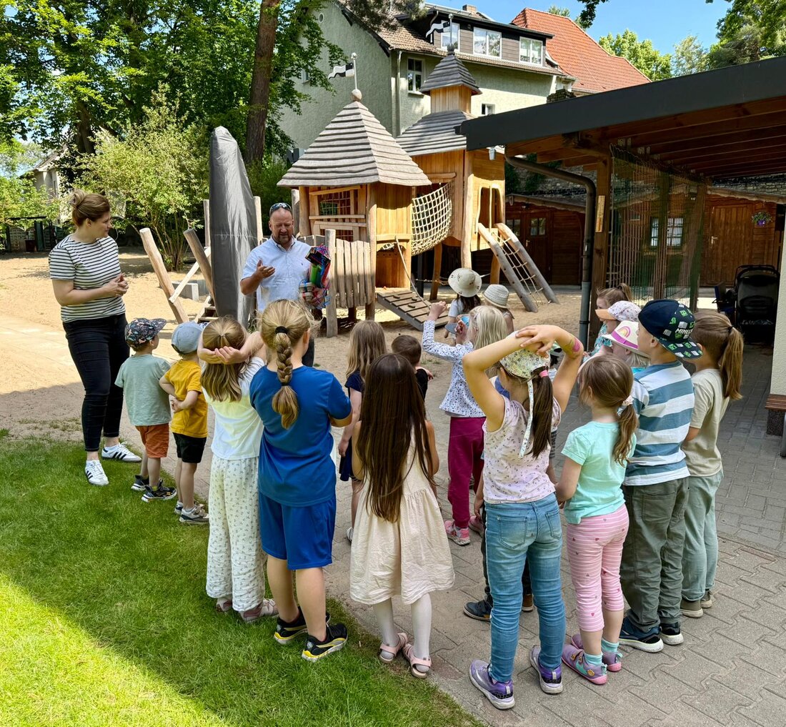 Wie in jedem Jahr besuchte Bürgermeister Stephan Zimniok anlässlich des internationalen Kindertages, der am 1. Juni gefeiert wird, die Einrichtungen der Gemeinde, um allen Kindern eine kleine Freude zu bereiten. Als erstes waren die Schülerinnen und Schüler der Pestalozzi-Grundschule an der Reihe, die in der großen Pause einer Durchsage des Bürgermeisters folgten und sich von ihm persönlich in der Ausgabeküche ein leckeres Milcheis abholten. Die Kinder freuten sich sehr, einige nutzten die Gelegenheit auch für einen kurzen Smalltalk mit dem Rathauschef. „Wir finden es gerecht, dass der Kindertag gefeiert wird“, erzählen drei Mädchen aus der Klasse 5a. „Schließlich gibt es ja auch Muttertag und Vatertag.“ Später fuhren Stephan Zimniok und Doreen Wilke, Fachbereichsleiterin für Bildung und Soziales in die Kitas Rumpelstilzchen, Birkenpilz und Festung Krümelstein, wo sie von den Jüngsten schon freudig empfangen wurden. Über Sandförmchen, Schippen, Bälle und allerlei andere nützliche Spielzeuge freuten sich die Kinder – die Geschenke wollten sie am liebsten gleich ausprobieren. Am Nachmittag wurden dann auch die Hortkinder im Hort Birkenhaus vom Bürgermeister beschenkt. Am internationalen Kindertag wird großer Wert darauf gelegt, die Bedeutsamkeit von Kinderrechten und -förderung ins öffentliche Bewusstsein zu rücken und den Kindern einen besonderen Tag zu schenken. So verfolgt der internationale Kindertag auch das Ziel, die jüngsten Mitglieder der Gesellschaft zu stärken und sichtbar zu machen.