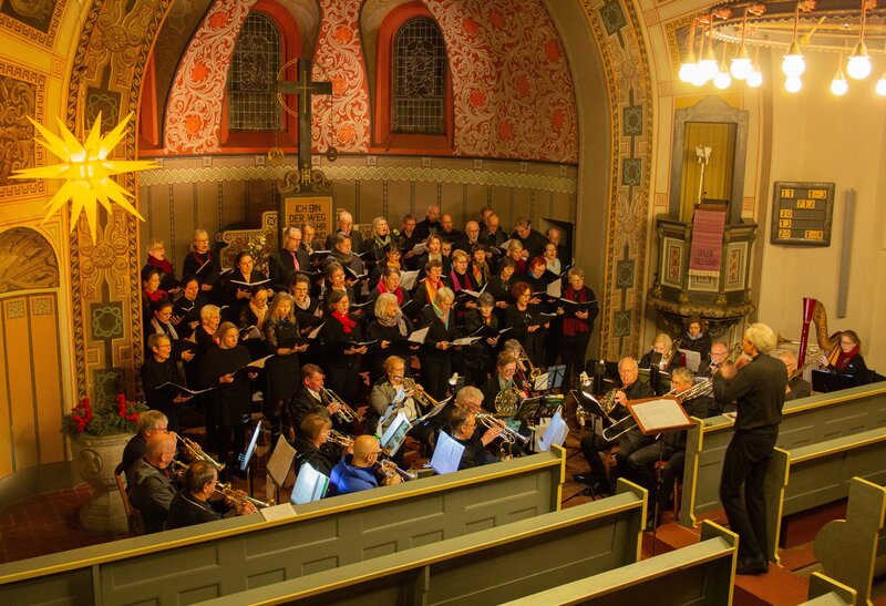 Großen Applaus bei vollem Haus gab es beim großen Weihnachtskonzert, das am 20.12.2025 in der Kirche in Hohen Neuendorf stattfand. Auf dem Programm standen das Weihnachtsoratorium von Camille Saint-Saëns sowie Choralbearbeitungen für Bläser. Es wirkten mit: Die Evangelischen Kirchenchöre aus Hohen Neuendorf und Birkenwerder sowie Sängerinnen und Sänger aus den evangelischen und katholischen Kirchenchören Borgsdorf und Schildow, die Posaunenchöre aus Hohen Neuendorf und Bergfelde sowie Cornelia Burdack (Orgel), Helena Janßen (Harfe), Susanne Finsch (Sopran), Alexandra Stolzenburg (Mezzosopran), Johanna von Goetze (Alt), Martin Trømborg (Tenor), Kantor Christian Ohly (Bariton und Leitung). Es war das dritte Konzert binnen fünfzehn Monaten, das in enger Zusammenarbeit zwischen den Evangelischen Kirchenchören der Nachbargemeinden stattfand. Auftakt war das Jubiläumskonzert anlässlich des 175. Geburtstages der Evangelischen Kirche Birkenwerder. Nicht nur das Publikum war damals begeistert. Auch den beteiligten Chören und Chorleiter/innen hatte die Zusammenarbeit so gut gefallen, dass sich alle eine Fortsetzung wünschten. Es folgte daher bereits im Juli 2025 ein Konzert in Hohen Neuendorf mit den Kirchenchören von Birkenwerder, Hohen Neuendorf und Bergfelde sowie den Posaunenchören aus Hohen Neuendorf und Bergfelde. Auf dem Programm standen damals u.a. Stücke von Monteverdi und Heinrich Schütz. Auch im Jahr 2026 setzen die Chöre ihre enge Zusammenarbeit fort. Auf dem Programm steht nun das Requiem von Gabriel Fauré. Im Evangelischen Kirchenchor Birkenwerder singen aktuell fünf Bässe, drei Tenöre, acht Altistinnen und sieben Sopranistinnen. Insofern ist der Chor stimmlich bereits gut aufgestellt. Gleichwohl lädt er Interessierte herzlich zum Mitsingen ein. Leiterin des Chores ist Cornelia Burdack. Die Probe ist immer montags von 19.30 Uhr bis 21.00 Uhr im Gemeindehaus der Evangelischen Kirche Birkenwerder, Hauptstr. 52. Die nächste Probe findet am 19. Januar statt. Am 12. Januar gibt es die nachgeholte Weihnachtsfeier - mit gemeinsamem Essen und Singen. Für Interessierte ist dies bereits eine gute Gelegenheit, den Chor kennenzulernen.