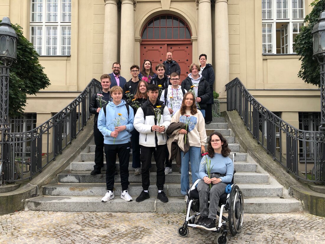 Die 13 Schüler*innen des Leistungskurses Politische Bildung erhielten im Anschluss an das Auswertungsgespräch von Katrin Gehring und Sophie Friese, der Initiatorin des Planspiels, Urkunden und Blumen überreicht. Außerdem erhielt jede Schüler*in eine ausführliche Teilnahmebescheinigung, die für spätere Bewerbungen genutzt werden kann.