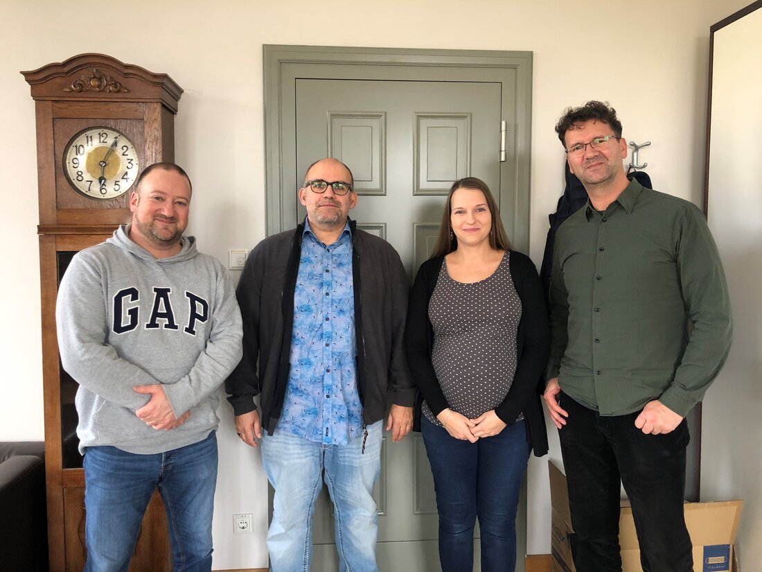 Die Initiatoren Gerald Lemke (r.) und Ronny Albrecht (2.v.l.), Beschafferin der Gemeinde Carina Liebich (2.v.r.) und Bürgermeister Stephan Zimniok (l.) freuen sich über das realisierte Dienstradleasing der Gemeinde Birkenwerder.