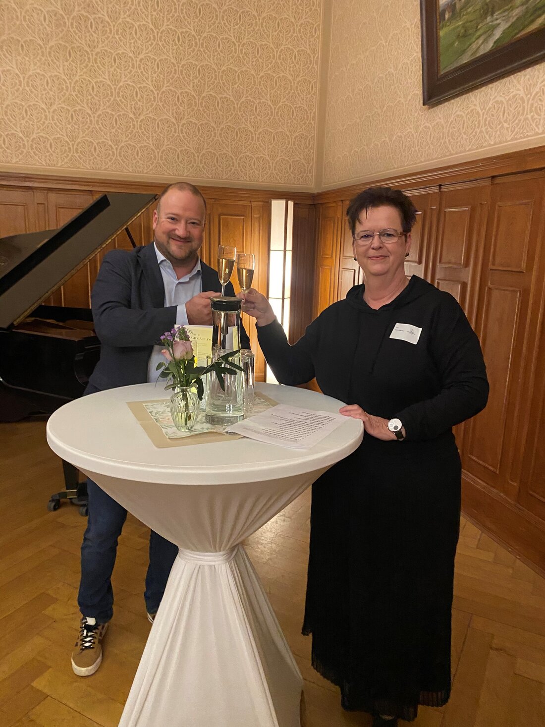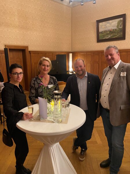 Bild 1: Bürgermeister Stephan Zimniok und Katrin Gehring, Vorsitzende der Gemeindevertretung, begrüßen die Gäste beim feierlichen Ehrenamtsempfang.