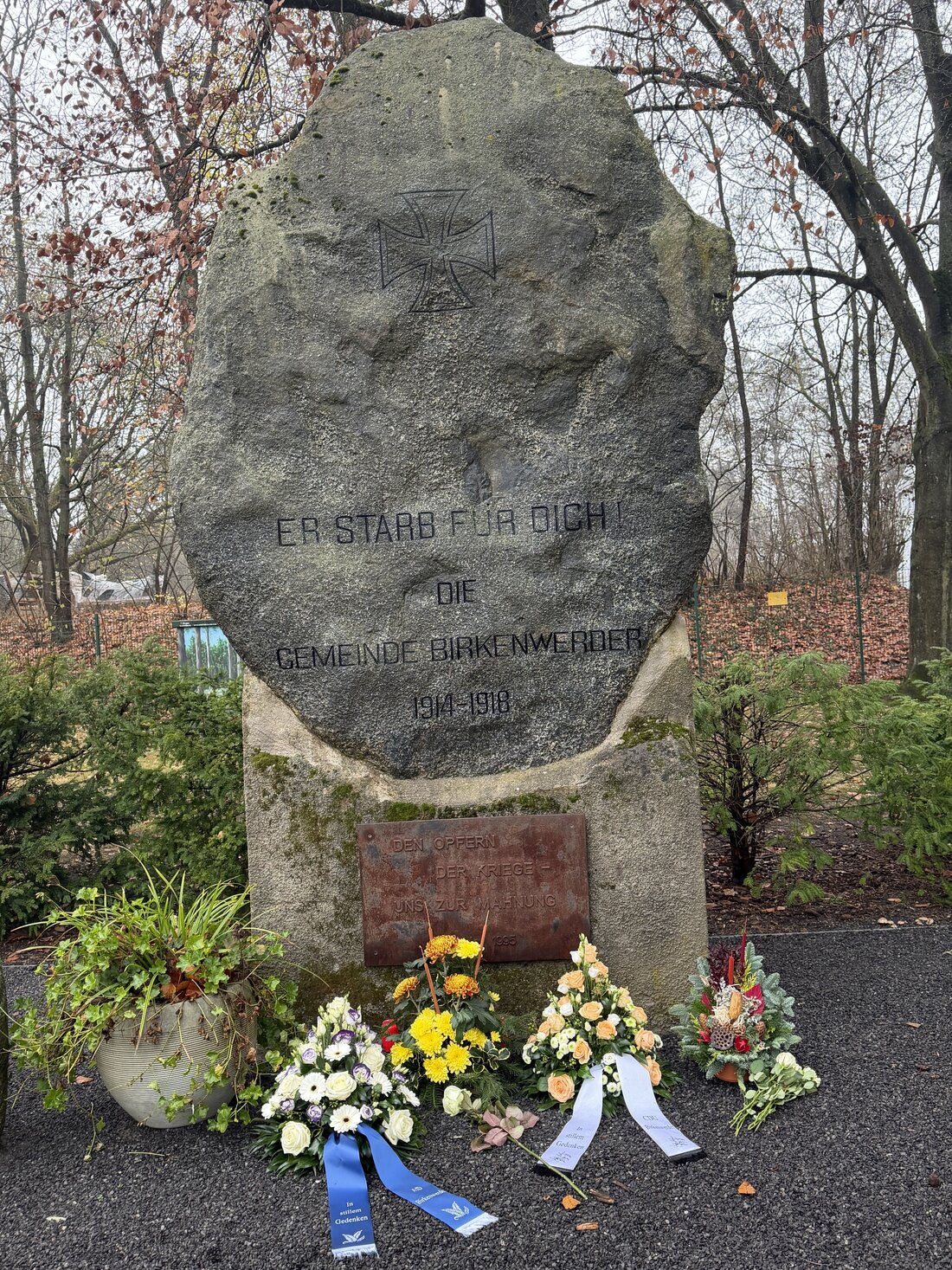 In Birkenwerder wurde am 16. November 2025 der Volkstrauertag feierlich begangen. Bürgermeister Stephan Zimniok sowie Vertreter verschiedener Parteien und Fraktionen der Gemeindevertretung versammelten sich am Gedenkstein vor dem Friedhof, der die Inschriften „ER STARB FÜR DICH – DIE GEMEINDE BIRKENWERDER 1914–1918“ und „DEN OPFERN DER KRIEGE – UNS ZUR MAHNUNG“ trägt.