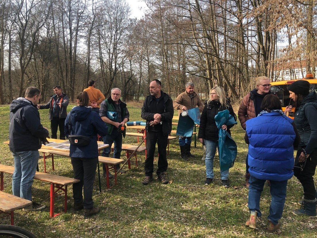 Torsten Werner freute sich über die vielen freiwilligen Helfer und die Unterstützung vom SDW aus Hohen Neuendorf. „Wir unterstützen uns bei solchen Aktionen immer gegenseitig. Dabei haben wir auch schon gemeinsam Fahrräder und Waschmaschinen aus der Natur geholt“, erinnert sich Werner. Außerdem bedankte er sich herzlich für die Unterstützung der Verwaltung. Hilmar Schütte aus dem Fachbereich Umwelt und Bauhofleiter Peter Richter und dessen Team waren traditionsgemäß vor Ort. Mitarbeiter des Bauhofs liefen ohnehin regelmäßig die Briese ab und sammelten Müll ein. „Ihr leistet tolle Arbeit und sorgt dafür, dass unser Ort schön ist“, lobte Torsten Werner den Bauhof. „Wir als Verein wollen uns auch darum kümmern, dass der Ort schön wird.“