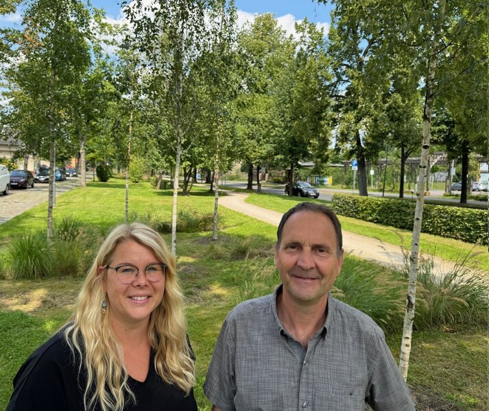 Frau Groth, Mitarbeiterin im Bauamt der Gemeinde, und Jens Kruse, Leiter des Bauamtes, freuen sich auf viele neue Bäume in Birkenwerder.