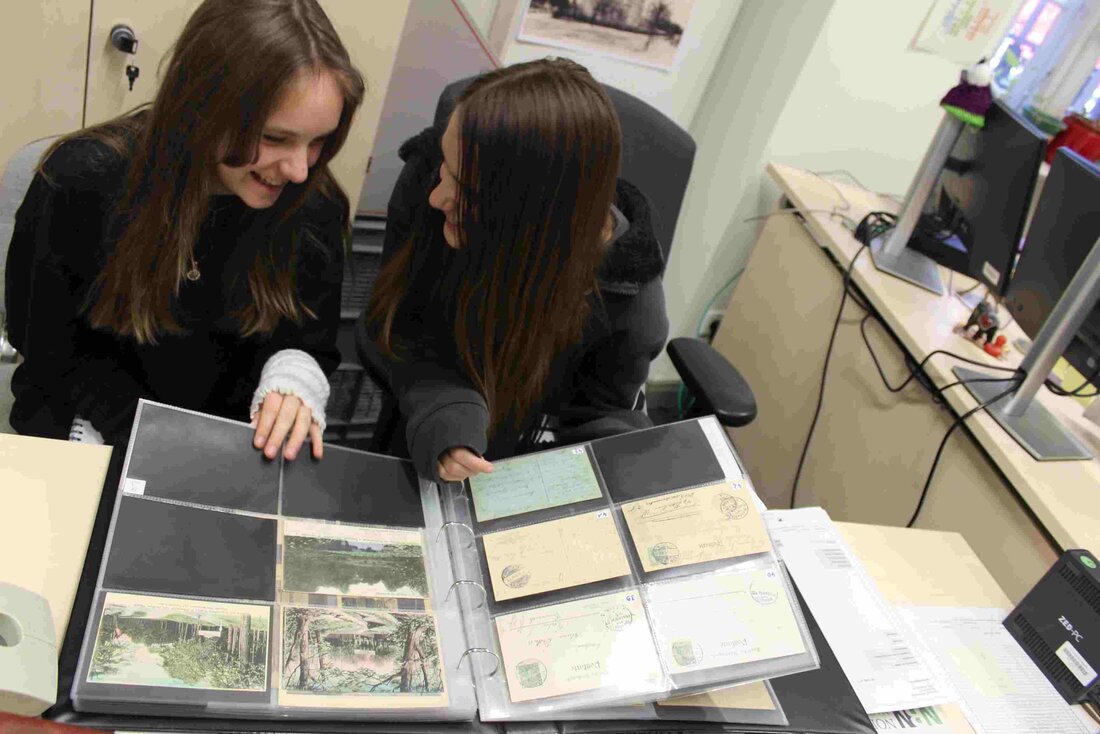 Bild 2: Felicia und Emily (v.l.) im Gemeindearchiv Birkenwerder.