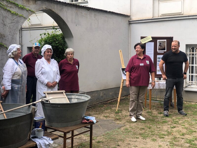Am 3. September lud der Freundeskreis Geschichtsstübchen zum Sommerfest mit den ikonischen Waschfrauen, Ausstellungen und Leierkasten-Musik in den Garten des Clara-Zetkin-Hauses in Birkenwerder.