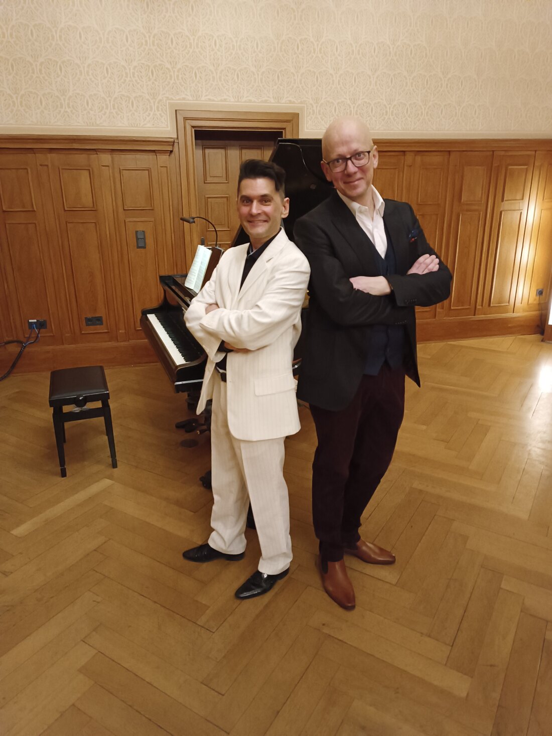 Simon Robinson (Bass‑Bariton) und Evgeny A. Nikiforov (Klavier, Moderation) spielten am 04. Februar 2024 den Liederzyklus „Winterreise“ von Franz Schubert im voll besetzten Ratssaal in Birkenwerder.
