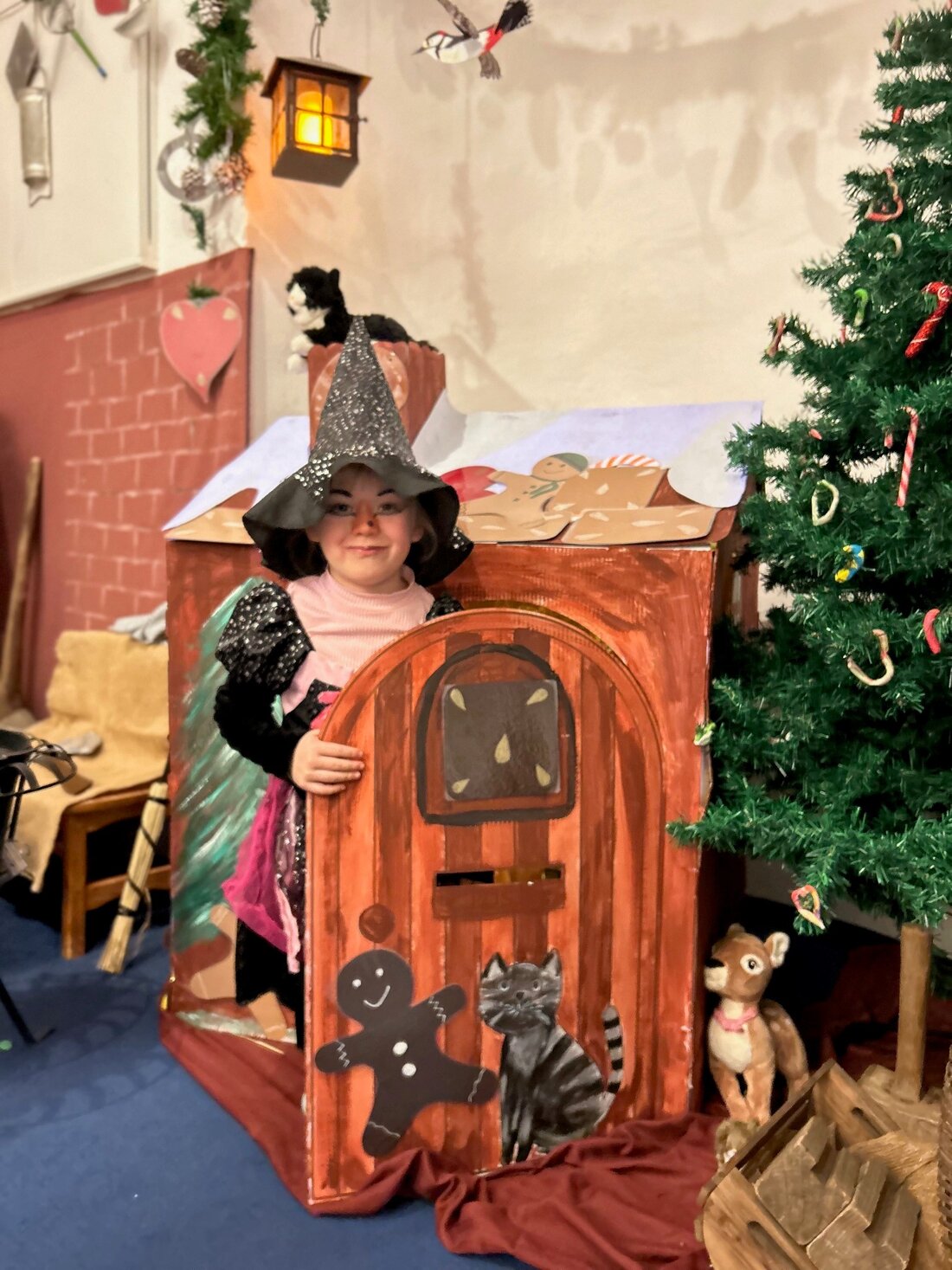 Bild 4: Die „böse“ Hexe schaut aus dem Pfefferkuchenhaus.