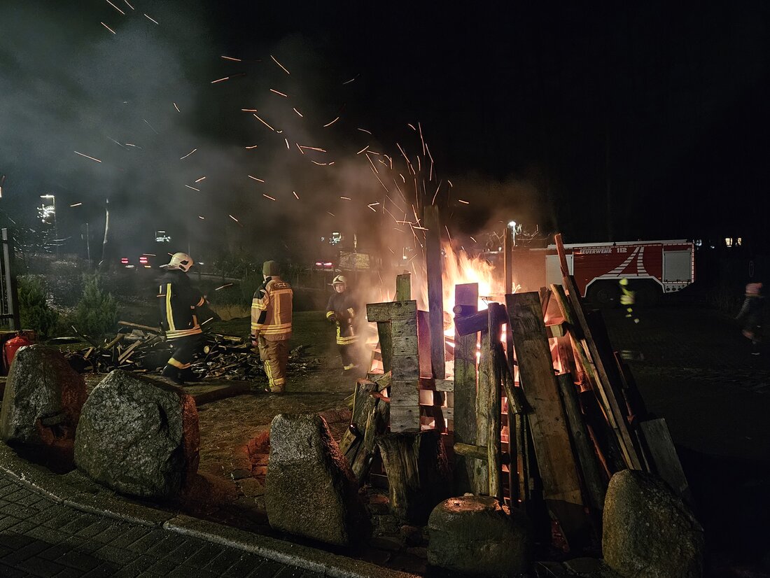 Bildunterschrift: Statt Weihnachtsbäume wurden alte Wildschutzzäune verbrannt