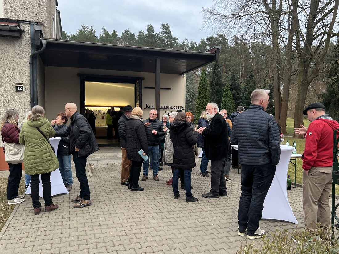 Der Verein „Ephata“ veranstaltete am Sonntag, dem 23. März, in der Kirche St. Theresia ein Konzert mit dem Liedermacher, Philosophen und Autor Stephan Krawczyk. Das Interesse war groß und die 180 Plätze reichten nicht aus, sodass viele Besucher das Konzert im Stehen verfolgten. Nicht nur Brandenburger Fans kamen zum Karmeliterkloster. Das Programm mit dem Titel „erdverbunden-luftvermählt“ beinhaltet Lebenslieder und Geschichten über die Kunst, frei zu sein, Kinder und Martin Luther. Stephan Krawczyk, bekannt als Liedermacher und Bürgerrechtler der DDR, braucht keine Band; er begleitet sich selbst mit Gitarre, Bandoneon und Maultrommel. In der Begrüßung wird der Liedermacher vorgestellt als Texter, der es mit Bert Brecht und Udo Lindenberg aufnehmen könne. Zwischen die Lieder, die zum Teil vom Publikum mitgesungen werden, streut er nachdenkliche Texte. Nach dem Konzert gibt es am Büchertisch nicht nur die Gelegenheit für Autogramme, sondern auch zum Kennenlernen einer Auswahl der Bücher, Essays und Betrachtungen sowie CDs. Im Interview verweist Krawczyk auf seine autobiografischen Romane, die seine Kindheit und seine Erfahrungen reflektieren. Zum Beispiel: „Der Narr“, „Augenhöhe“, „MENSCH NAZI“ und „TAU-Betrachtungen“. In seinem neuen Buch „Augenhöhe- Vater Sohn Momente“ verarbeitet er seine Erfahrungen als alleinerziehender Vater. Er beschreibt darin, wie die Beobachtungen seines Sohnes seinen eigenen Blick auf die Welt verändern. Der ehemalige DDR-Dissident legt sehr großen Wert auf Aufklärung und stellt für Lehrkräfte Unterrichtsmaterial für die 9.und 10. Schulklassen zu Verfügung - für den Geschichtsunterricht, für Ethik und Politische Bildung. Viele Besucher nehmen auch CDs mit, das Repertoire reicht von Ringelnatz-Liedern bis zu Milonga. Nach dem Konzert gibt es viele interessante Gesprächsrunden. Der Verein „Ephata“, der das Konzert ohne Eintritt auf Spendenbasis organisiert hat, lädt als Ausklang zur Zusammenkunft mit kleinen Erfrischungen ein.