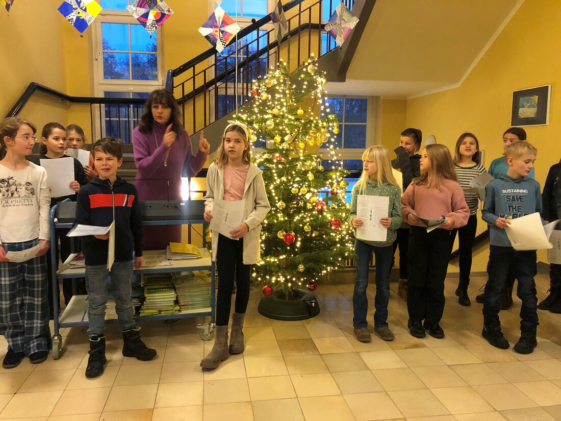 Nach zwei Jahren pandemiebedingter Pause kann in diesem Jahr auch die mittlerweile 18-jährige Tradition des Weihnachtssingens fortgeführt werden. Jeden Montag treffen sich zwei Jahrgänge um 8 Uhr im Foyer der Schule, um gemeinsam Weihnachtslieder zu singen und den großen Raum mit ihren Stimmen zu füllen. Die fünften und sechsten Klassen waren am 5. Dezember dran, die dritten und vierten am 12. Dezember. Am letzten Montag vor Weihnachten singen die Jahrgänge 1 und 2. Organisiert wird das Weihnachtssingen vom Fachbereich Musik. Den Schülerinnen und Schülern gefällt der musikalische, vorweihnachtliche Start in die Woche. „Es war toll“, findet eine Drittklässlerin.
