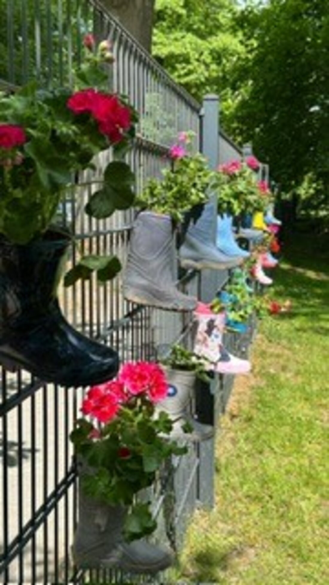 Mit farbenfrohen Blumen bepflanzte Gummistiefel zieren neuerdings den Zaun der Kita Rumpelstilzchen in Birkenwerder. Für die große gemeinsame Pflanzaktion haben Kinder Geranien und alte Gummistiefel mitgebracht. "Unser Hausmeister hat Löcher in die Sohlen der Stiefel gebohrt", berichtet Kitaleiterin Anja Paulick. Dann wurden die Stiefel mit Erde befüllt und die Blumen eingesetzt. "Die restlichen Blumen haben wir in Töpfe gepflanzt und auf dem Kitagelände verteilt. Die Kinder, Erzieherinnen und der Hausmeister hatten einen Riesenspaß", erzählt Anja Paulick.