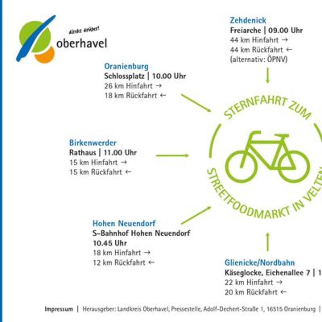 Der Landkreis lädt gemeinsam mit Städten und Gemeinden zum Radfahren ein / Startpunkte in sieben Orten / Sternfahrt zum Streetfoodmarkt in Velten