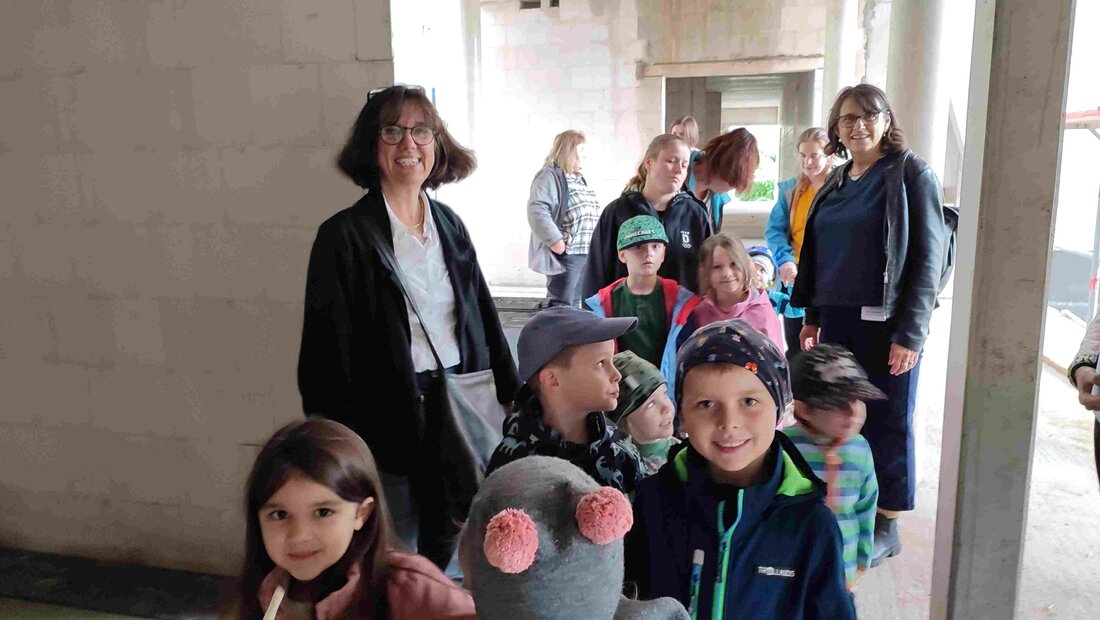 Bild 3: Architektin Claudia Schulte zeigt den Kindern der Kita Festung Krümelstein den Rohbau.