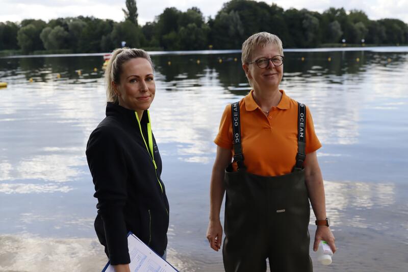Christina Gutteck (links) und Cordula Glasow (rechts im Bild) untersuchen die Wasserqualität der Badeseen in Oberhavel.