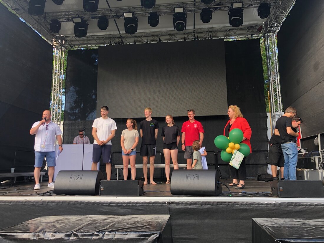 Bild 3: Bürgermeister Stephan Zimniok und Bundestagsabgeordnete Ariane Fäscher prämierten „Nikita“, die Gewinner des Beachvolleyball-Turniers.