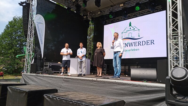 Weiter ging es am Samstag, 10. Juni. Pünktlich um 14 Uhr, betritt Bürgermeister Stephan Zimniok die große Bühne auf der Festwiese, vor der sich bereits zahlreiche Besucher niedergelassen haben. Begleitet wird er in diesem Jahr vom Hohen Neuendorfer Bürgermeister Steffen Apelt, der Bundestagsabgeordneten Ariane Fäscher und Landrat Alexander Tönnies. Nach einer freundlichen Begrüßung aller Anwesenden und einem Dankeschön an die Organisatoren und Helfer, räumen sie die Bühne für die Tanzmäuse des Tanzstudios Lila, die an diesem Sonnabend den Auftakt für ein vollgepacktes und abwechslungsreiches Bühnenprogram bilden.