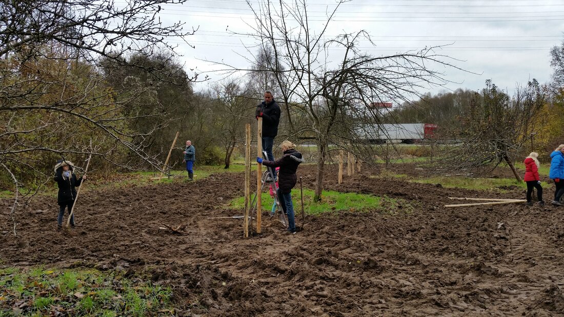Der Briesetalverein hat mit der Gemeinde einen Pflegevertrag über fünf Jahre geschlossen. Die Vorarbeiten für den Boden sind bereits erledigt. Detlef Joachim hat das Pflügen übernommen und Nadja Sandig hat aus ihrer Komposttieranlage in Germendorf die passende Erde geliefert, so Werner. „Der Briesetalverein pflanzt hier 22 Obstbäume. Vor allem Kirschen, Äpfel und Birnen. Wir haben uns für fünf Jahre alte Hochstämme entschieden und eine schöne Sortenvielfalt, von dem Chefpomologen in Brandenburg, Hans Georg Kosel, zusammenstellen lassen. Die Mischung besteht aus Cox Orange, Klarapfel, Ontario, Biesterfelder Renette und Schwarze Knorpel, um nur einige zu nennen“, sagt der Vereinsvorsitzende.