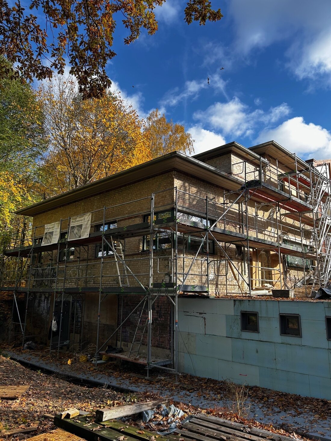 Vor anderthalb Jahren wurde der erste Spatenstich gefeiert, nun befinden sich der Umbau und die Sanierung des Wasserwerkes in Birkenwerder bereits im zweiten großen Bauabschnitt. In dem historischen Gebäude im Zentrum der Gemeinde, dem vor einigen Jahren noch der totale Verfall drohte, entsteht ein moderner Veranstaltungsort, der variabel genutzt werden kann. Auch der Außenbereich wird so gestaltet, dass die Gäste dort laue Sommerabende mit guter Unterhaltung genießen können. Das Alte Wasserwerk wurde 1904 zunächst als Gas- und Wasserwerk errichtet und erhielt 1934 durch den Architekten Paul Poser seine heutige Form im Stil der Neuen Sachlichkeit. Das ehemalige Wasserwerk befindet sich im Eigentum der Gemeinde Birkenwerder und wurde 2019 unter Denkmalschutz gestellt. Es wurde auf Initiative des Fördervereins Kulturpark Birkenwerder e.V. seit 2019 in ehrenamtlicher Arbeit für eine Sanierung hergerichtet. Der Umbau des alten Wasserwerks zum Veranstaltungsort wird in drei Bauabschnitten realisiert. Bis Ende 2024 wurde im ersten Abschnitt der neue Begegnungsort komplett barrierefrei gestaltet und durch die bauliche Erweiterung ein neuer Sanitärbereich fertiggestellt. Derzeit wird im zweiten Teil das Bestandsgebäude nach denkmalschutzrechtlichen Vorgaben saniert und Veranstaltungsbereiche auf drei Ebenen geschaffen. Dabei wird die alte Pumpentechnik erhalten und bleibt sichtbarer Bestandteil des Gebäudes – darauf zurückzuführen ist auch der Projektname „Kulturpumpe“. Die Sanierung des Bestandsgebäudes wird bis Anfang 2026 abgeschlossen sein. Der 3. Bauabschnitt umfasst die Umsetzung der Außenanlagen mit barrierefreier Zuwegung und Rettungswegen. Hierfür konnten Studenten der Peter-Lenné-Schule aus Berlin gewonnen werden, die die Außenflächen im Rahmen ihrer Semesterarbeit und in Begleitung zweier Professoren planen. Die künftigen, staatlich geprüften Techniker in Garten- und Landschaftsbau stellten ihre ersten Entwürfe vor und tragen nun maßgeblich dazu bei, der Nutzungserlaubnis näher zu kommen.
