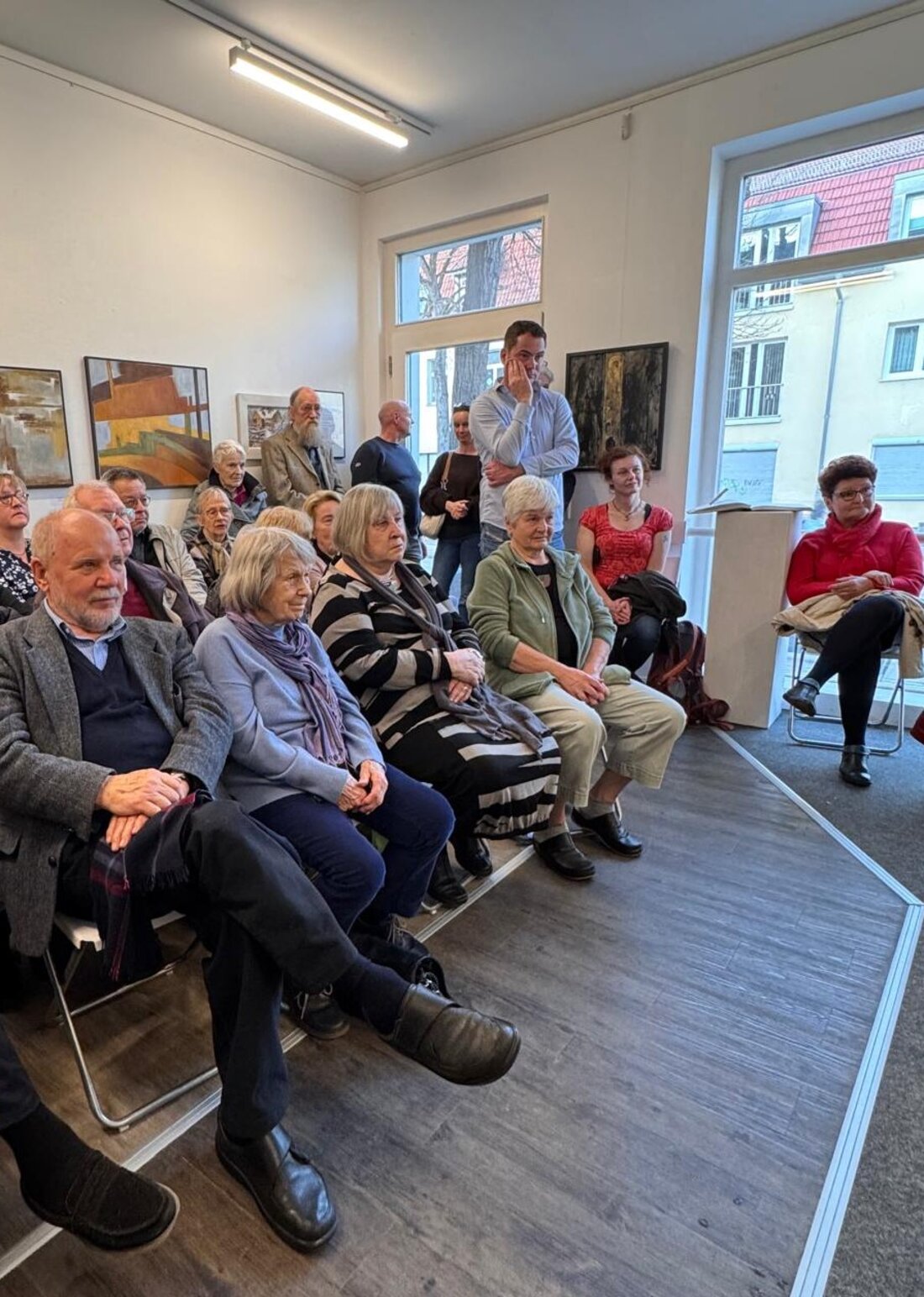 Kurz darauf füllt sich die Galerie - Familie, Freunde, nahestehende Künstler*innen, Vertreter der Gemeinde und viele Kunstinteressierte sind gekommen, um gemeinsam diese Ausstellungseröffnung zu feiern.