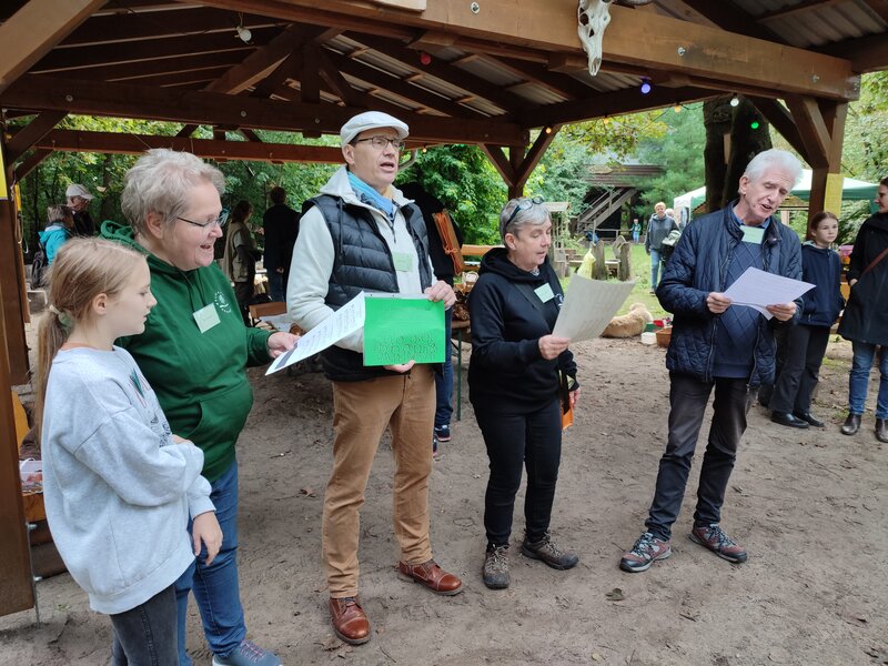 Bild 1: Der Vorstand des Vereins Waldschule Briesetal e.V. stimmt ein Lied zur Begrüßung an.