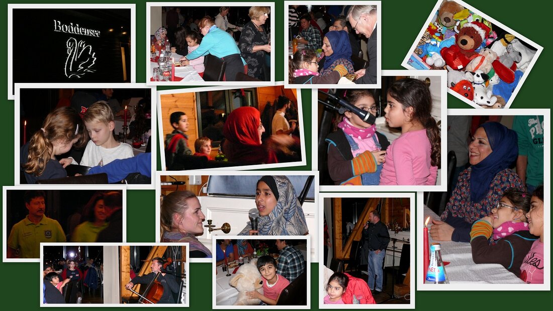 Hiram Villalobos berichtete, dass diese Veranstaltung gemeinsam von der Gaststätte und der Willkommensinitiative durchgeführt wird. So wurden die Unterstützer der Willkommensinitiative gebeten, als Helfer beim Servieren mitzumachen und außerdem konnten Spenden abgegeben werden. Henrik Lehmann, Inhaber der Gaststätte, sicherte 100% die Speisen und Getränke ab und so stand ein vielfältiges Buffet bereit sowie Tische voller Geschenke, das waren vor allem Kleidung und Spielzeug.