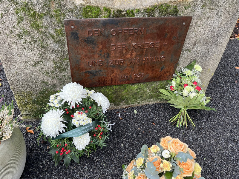 Der große Gedenkstein am Mahnmal trägt die Inschrift. „ER STARB FÜR DICH - Die Gemeinde Birkenwerder 1914-1918.“ Auf der am Stein angebrachten Gedenktafel vom Mai 1996 ist zu lesen: „DEN OPFERN DER KRIEGE – UNS ZUR MAHNUNG“. Gerade in diesem Jahr und besonders in den jetzigen Tagen hat diese Inschrift eine bedrückende Aktualität. Es war eine sehr würdevolle Gedenkstunde, die bestimmt in allen Beteiligten noch lange nachwirken wird.
