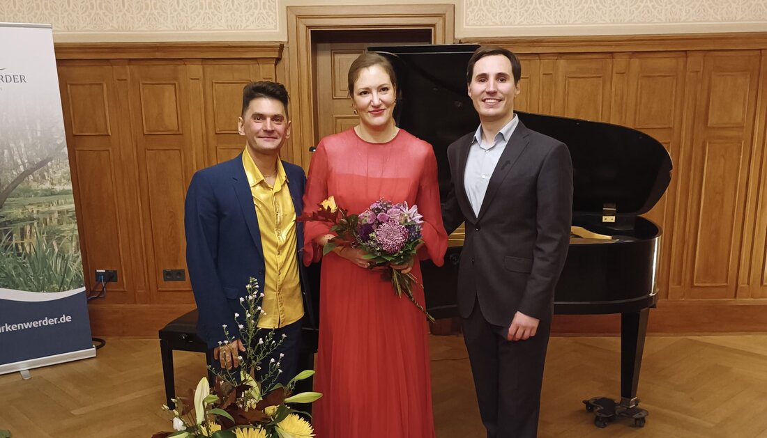 Irina Papenbrock (Sopran), Fjodors Sidjakovs (Bariton) und Evgeny A. Nikiforov (Klavier, Moderation) spielten am 13. Oktober 2023 ein klassisches…
