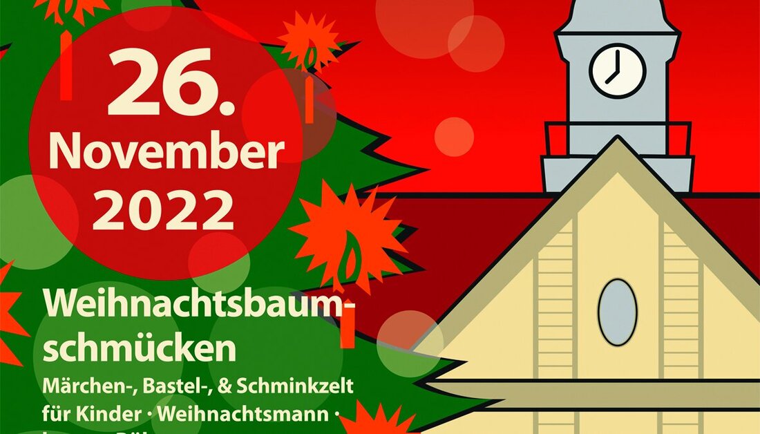 Weihnachtsmarkt und Weihnachtsbaum schmücken am Rathaus Birkenwerder