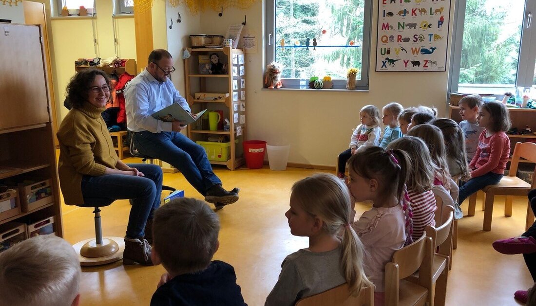 Landesgleichstellungsbeauftragte und Bürgermeister lesen Kitakindern vor