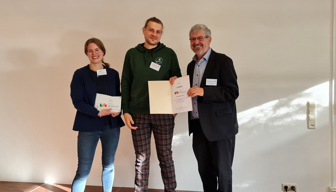 Verleihung des Zertifikats „Natürlich. Nachhaltig. BNE in Brandenburg“ an Constantin Geilen durch Landwirtschaftsminister Vogel in Potsdam Die…
