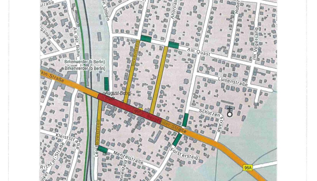 B 96 Baustart in der Ortsdurchfahrt Birkenwerder - Bergfelder Straße zwischen der S-Bahnbrücke und der Ahornallee voll gesperrt