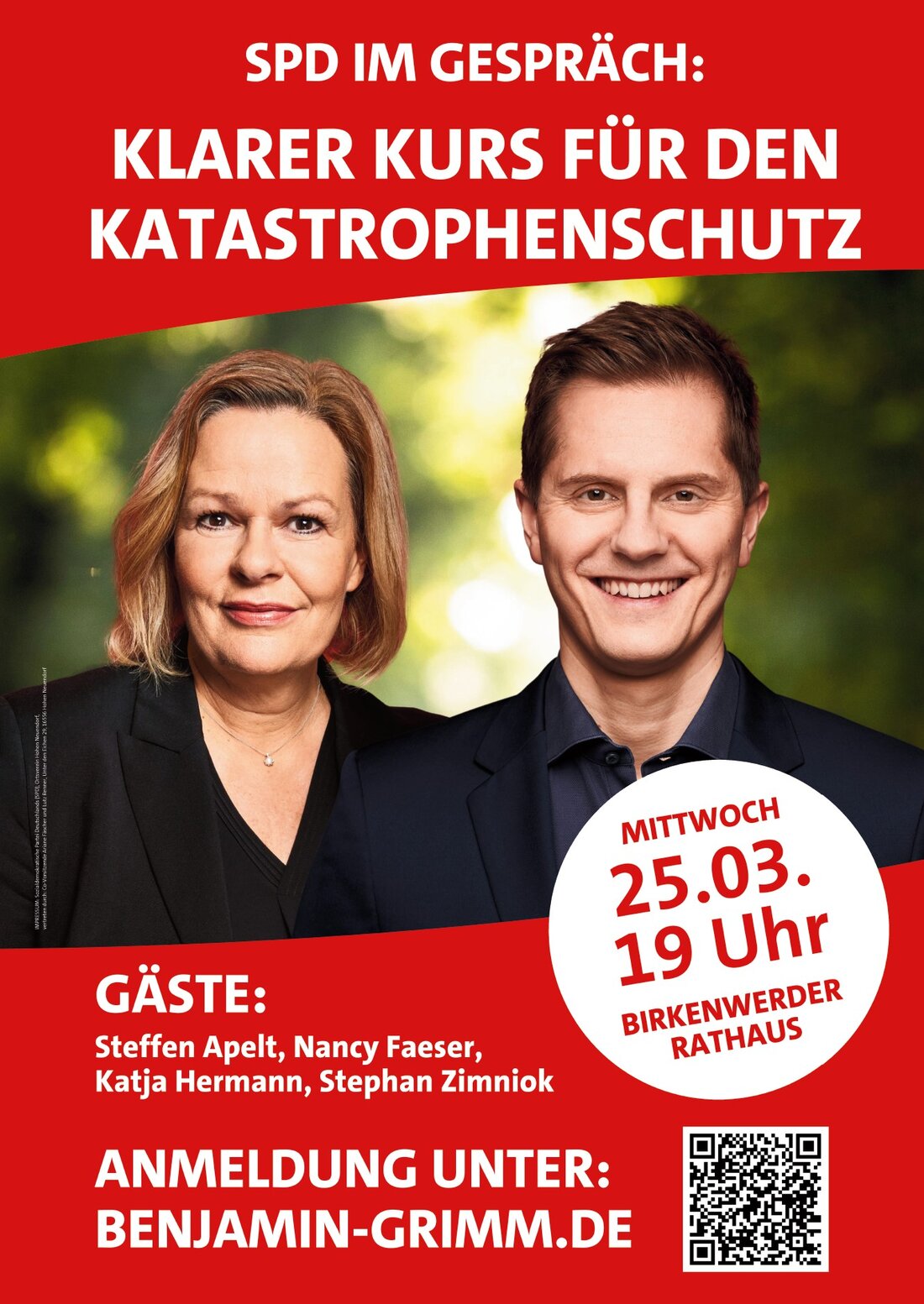 Durch den Abend führen der Landtagsabgeordnete Dr. Benjamin Grimm und die Co-Vorsitzende der SPD Hohen Neuendorf, Ariane Fäscher, in einer Doppelmoderation.