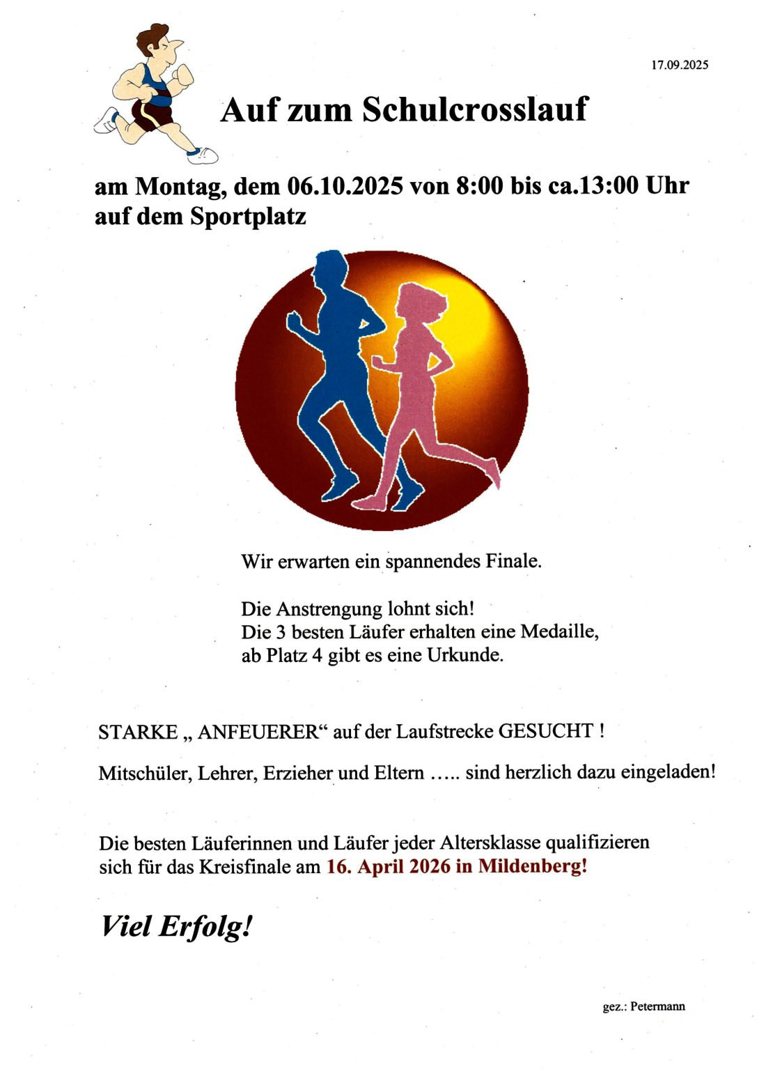 Streckenverlauf: Start - Sportplatz - Briesesteig - Fontaneweg - Ziel: oberer Schulhof Grundschule