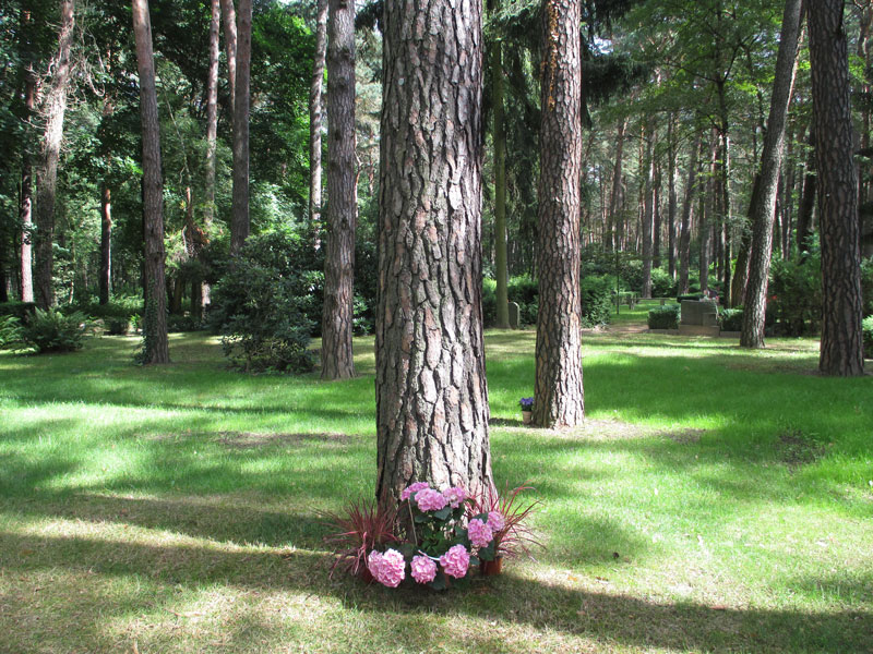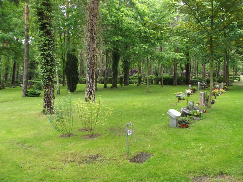 Weiterhin können Angehörige eine Wiesenbestattung auswählen. Bei dieser Art der Bestattung übernimmt die Friedhofsverwaltung die Pflege der Grabstätte. Steckvasen mit Frischblumen dürfen direkt an der Grabstelle im Rasen abgelegt werden.